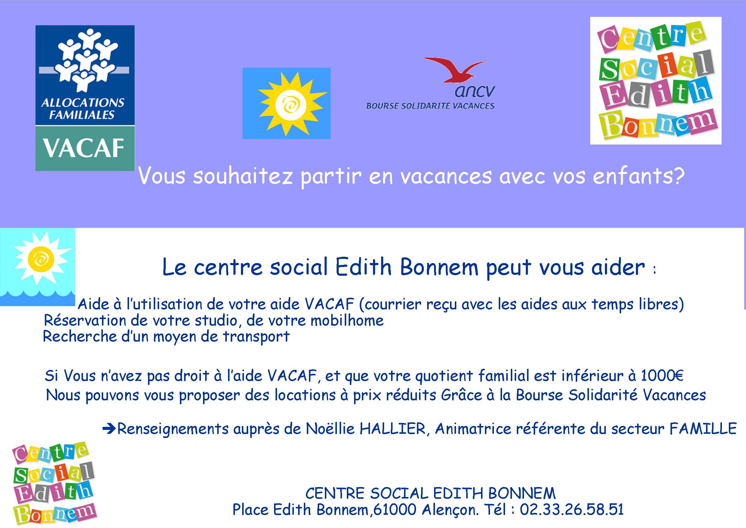 - Favoriser le départ en vacances des familles aux revenus modestes habitant le quartier de Villeneuve et les quartiers prioritaires d’Alençon.